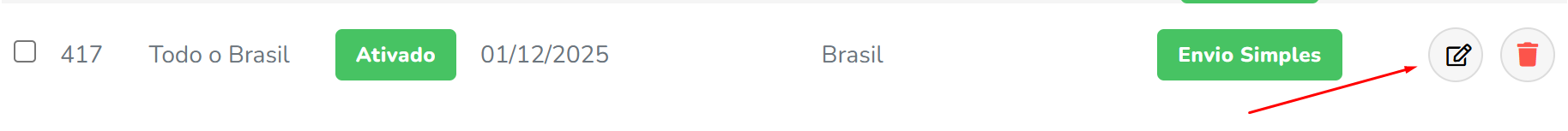 - Clique em Editar na regra de frete onde deseja ativar a Conect Express.