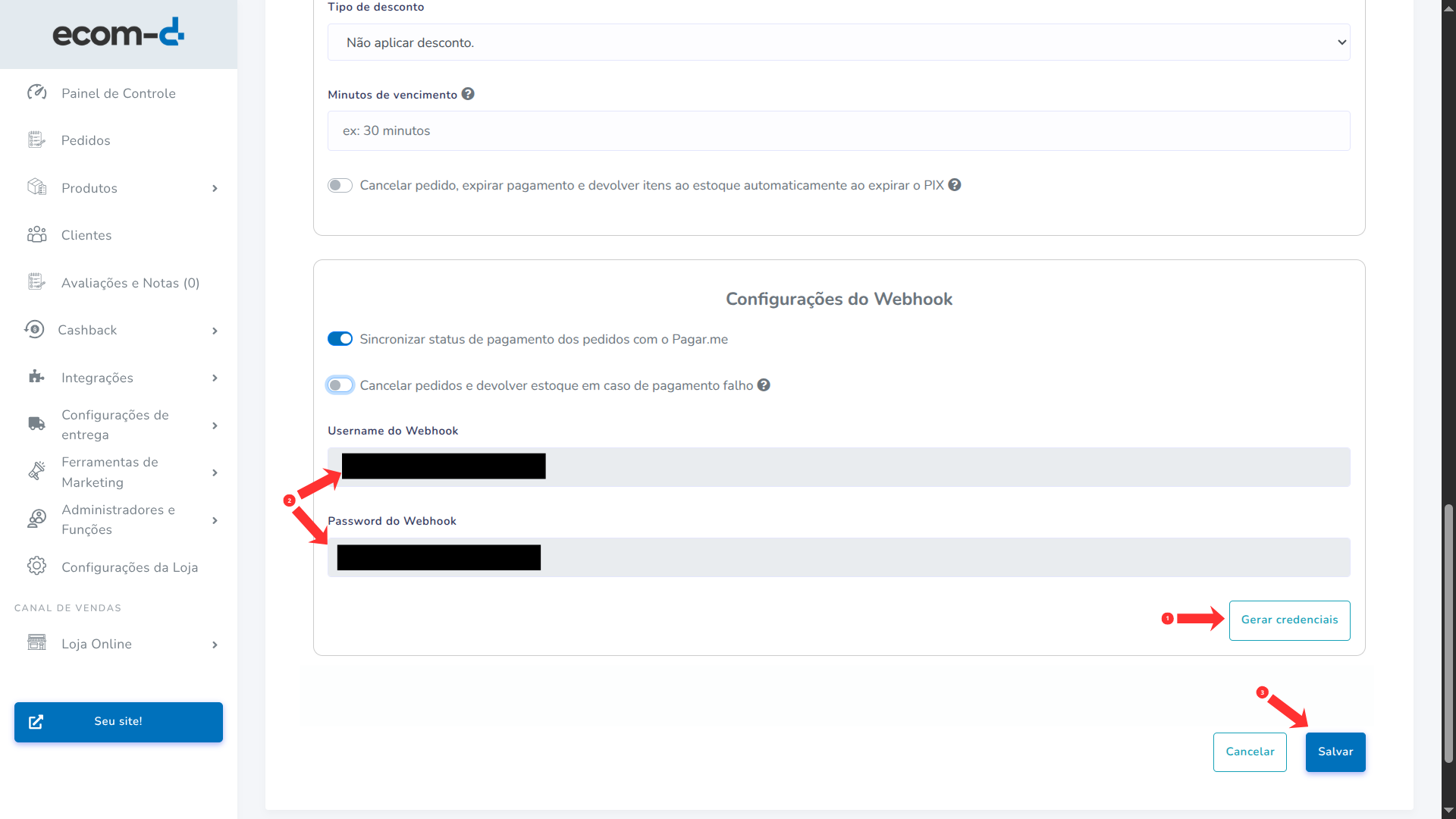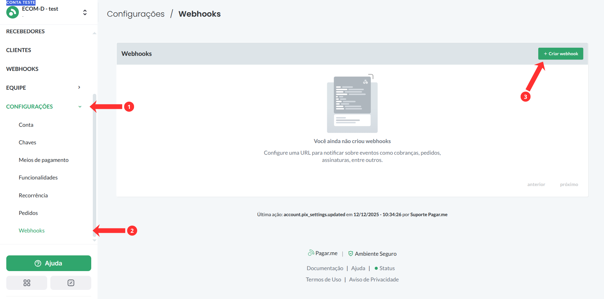 Dessa maneira, a integração e a configuração do webhook do Pagar.me na plataforma Ecom-d estarão concluídas.